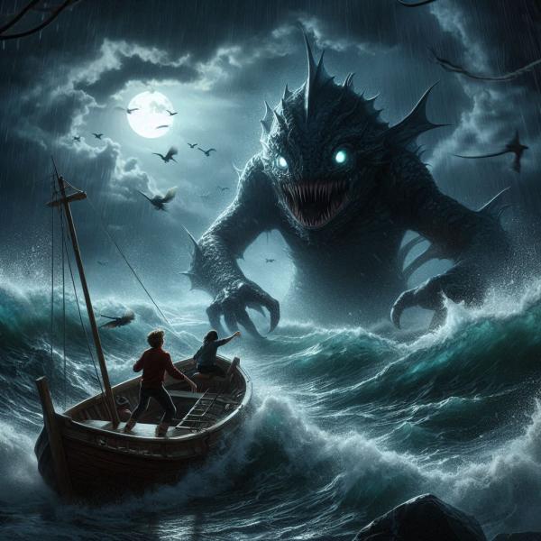 হঠাৎ, নৌকাটি একটি শক্তিশালী ঢেউয়ে আঘাত খেল। এরিক নৌকার হাল শক্ত করে ধরে রইল, কিন্তু তারপরই সে একটি ভয়ঙ্কর শব্দ শুনতে পেল—যেন কেউ গভীর থেকে ডাকছে। শব্দটি এতটাই ভয়ানক ছিল যে এরিকের হৃদয় কেঁপে উঠল।