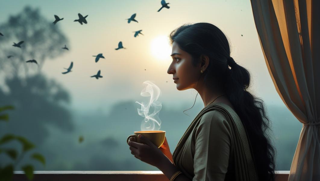 প্রতিদিন ভোরবেলা, সূর্য ওঠার আগেই, নীলা এক কাপ গরম চা হাতে নিয়ে বারান্দায় এসে দাঁড়ায়। তার চোখ যায় দূরের আকাশে, পাখিদের ডানায় ভেসে বেড়ানো আলো-ছায়ার খেলার দিকে। বারান্দাটাই যেন তার নিঃশব্দ অনুভবের ক্যানভাস—যেখানে সে প্রতিটি সকালে আঁকে একটাই মুখ... আরিফের।
