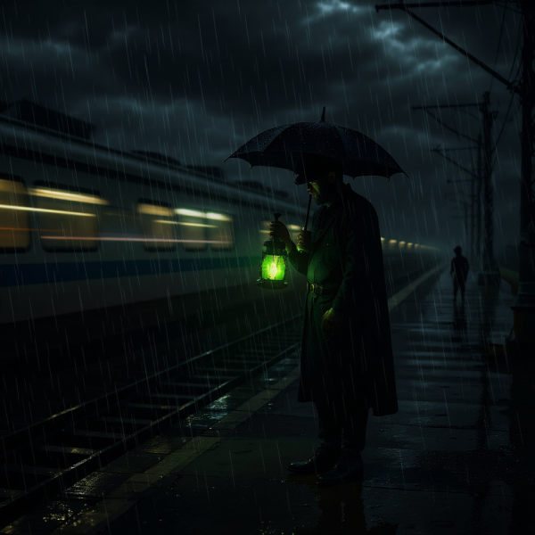বেশ অনেকটা সময় কেটে গিয়েছে৷ হঠাৎ টুং করে ব্লক মেশিনে শব্দ হলো ! পাশের স্টেশন থেকে সংকেত এসেছে! ব্লকের নীচের দিকে পিতলের তৈরি মাথাটা চাপ দিয়ে ভেতরে ঠেলে দিয়ে লিভারটা ঘোরালেন। টুপ করে একটা পিতলের ফাঁপা বল বেরিয়ে এলো৷ ট্রেন আসবে। নামটা সুন্দর, "সীমান্ত এক্সপ্রেস"! প্রচন্ড গতি নিয়ে চিলাহাটি-খুলনা ছুটে চলে। রাত প্রায় পৌনে এগারোটা বাজে! স্টেশনমাস্টার হারিকেন সর্দৃশ সিগন্যাল জ্বালালেন, একপাশে সবুজ রং একপাশে লাল রংয়ের কাঁচ থাকায় দুই পাশে দুই রকম রং দেখা যায়৷ এক হাতে সেই হারিকেনের সবুজ দিকে ট্রেনের দিকে তাক করে, আরেক হাতে ছাতা মাথায় তিনি প্ল্যাটফর্মে বৃষ্টির মাঝে দাঁড়িয়ে রইলেন, থেমে থেমে বৃষ্টির ঝাপটা তার গায়ে লাগছে৷ স্টেশনের এক মাথায় আলোটা ধীরে ধীরে উজ্জ্বল ও বড় হচ্ছে। ট্রেন আসার আগে লাইনে একটা বিদ্যুৎ চমকানোর মতো শিহরণ জাগানো শব্দ হয়, শব্দটা ম'সাহেবের বেশ ভালো লাগে। ঝড়ো গতিতে ট্রেনটা চলে গেলো। ঠিক তখনই দক্ষিণ পাশের অন্ধকারে চোখে পড়ল একটা ছোট্ট ছায়া। মনে হলো, ভিজে কুঁকড়ে থাকা এক ছেলে। ট্রেন চলে যেতেই আলো মিলিয়ে গেল—এখন আর কিছু দেখা যায় না। ট্রেন যাওয়ার সময় একটু আলোতে যা দেখেছিলেন এখন তাও দেখা যাচ্ছে না। আশেপাশে বাড়িঘরও নেই বললে চলে। তিনি এগিয়ে যাবেন কি না ভাবতে ভাবতে এগিয়ে গেলেন৷ কিন্তু প্রচন্ড বৃষ্টিতে পিচ্ছিল হয়ে যাওয়াটা প্ল্যাটফর্ম থেকে লাইনে নামতে গিয়ে হোঁচট খেয়ে পড়ে গেলেন! প্রচন্ড ব্যাথায় কুকড়ে গেলেন অথচ নড়ার শক্তিটাও পাচ্ছেন না৷