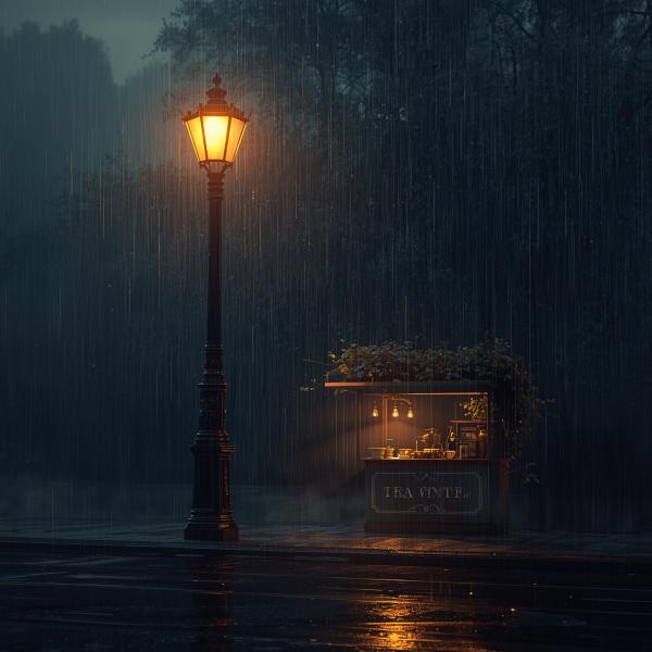 গরম চায়ের কাপে ধোঁয়া উঠছে, বাইরে বৃষ্টির পর্দা নেমে আসছে। সেই মুহূর্তটা যেন ল্যাম্পপোস্টের নিচের রাতটার প্রতিচ্ছবি।