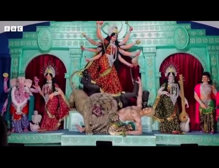 সাম্প্রতিক দুর্গাপূজা উৎসবে এক বিতর্কিত প্রতিমা প্রদর্শনের মাধ্যমে বাংলাদেশের বর্তমান উপদেষ্টা ড. মুহাম্মদ ইউনূসকে অশুর (মহিষাসুর) রূপে উপস্থাপন করা হয়েছে। এই ঘটনাটি সামাজিক যোগাযোগমাধ্যমে ছড়িয়ে পড়ার পর দেশজুড়ে তীব্র সমালোচনা ও প্রতিবাদের ঝড় উঠেছে।
