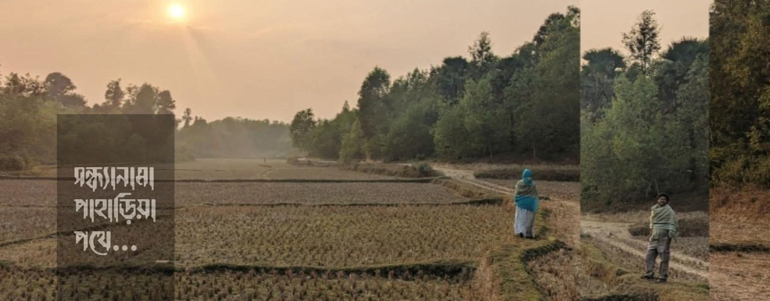 শীত নামা বিকেলে গ্রামের আল পথে হাঁটছি তোমার হাত ধরে। পাহাড়ের কোলে হাসি-আড্ডার খুনসুটিতে দেখছি দিগন্তজোড়া ফসলের মাঠ। ধানের জমি। কোথাও বা উড়ে যাওয়া সাদা বক। ক্লান্ত বিকেলে থেমে থেমে ভেসে আসা ঘুঘুর ডাক। চারিদিকে ঘুঘুর ডাকে নেমে আসে সন্ধ্যা।