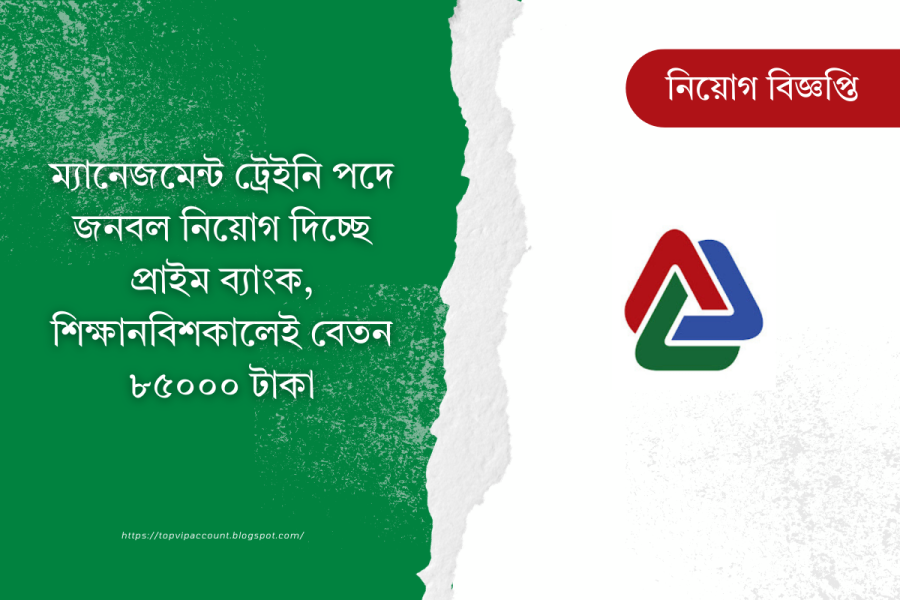 ম্যানেজমেন্ট ট্রেইনি পদে জনবল নিয়োগ দিচ্ছে প্রাইম ব্যাংক, শিক্ষানবিশকালেই বেতন ৮৫০০০ টাকা