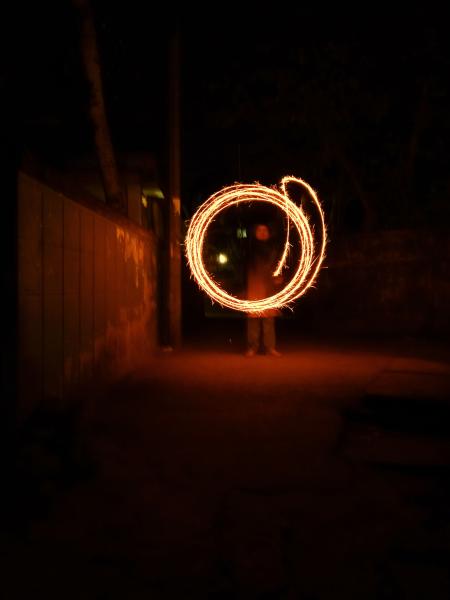 The photograph presents a continuous circular motion of fire, created using long exposure. This loop becomes the central visual and conceptual element of the image. It reflects repetition and anticipation—the feeling of waiting, of moments building upon one another just before a significant event begins. What would normally disappear in seconds is transformed into something sustained and almost meditative.