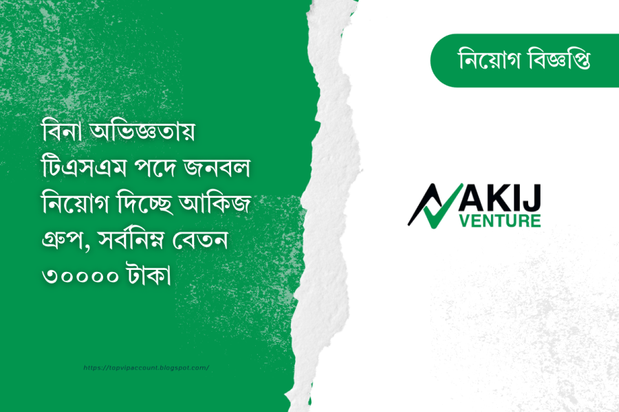 বিনা অভিজ্ঞতায় টিএসএম পদে জনবল নিয়োগ দিচ্ছে আকিজ গ্রুপ, সর্বনিম্ন বেতন ৩০০০০ টাকা