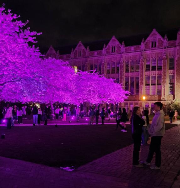 জাপানীরা বন্ধুত্বের নিদর্শন স্বরুপ আমেরিকাকে দেয়া এইসব গাছ এখন University of Washington’র আইকন। বছরের মার্চ মাসে দরজা খুলে দেয়া হয়, মানুষ দল বেধে মুগ্ধ হতে আসে। সকালবেলার দুধে আলতা রঙয়ের ফুল, রাতের বেলা কৃত্রিম বেগুনী আলোতে ক্যাম্পাস মাতিয়ে রাখে। এত সুন্দর যে, চোখ ফেরানো দায়।