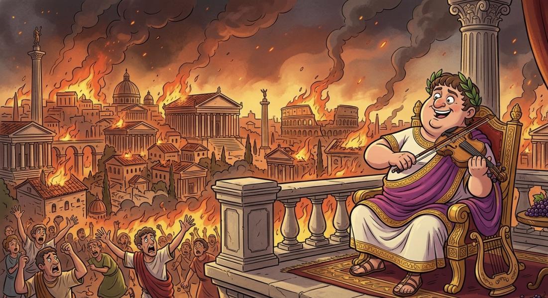 সহজ কথায় বলতে গেলে, "রোম যখন পুড়ছিল, নীরো তখন বাঁশি বাজাচ্ছিলেন" এটি যতটা না ঐতিহাসিক সত্য, তার চেয়ে অনেক বেশি একটি শক্তিশালী রূপক বা বাগধারা।