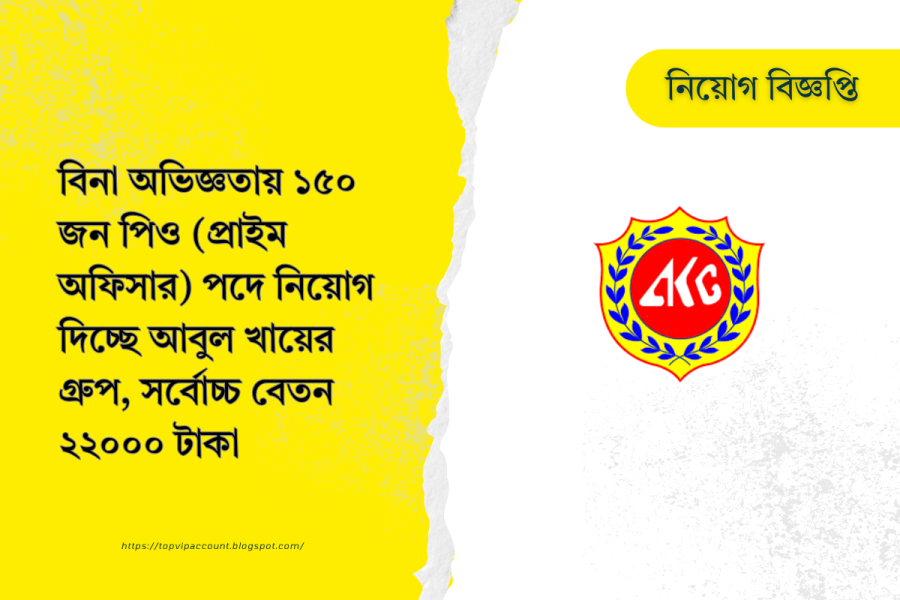বিনা অভিজ্ঞতায় ১৫০ জন পিও (প্রাইম অফিসার) পদে নিয়োগ দিচ্ছে আবুল খায়ের গ্রুপ, সর্বোচ্চ বেতন ২২০০০ টাকা